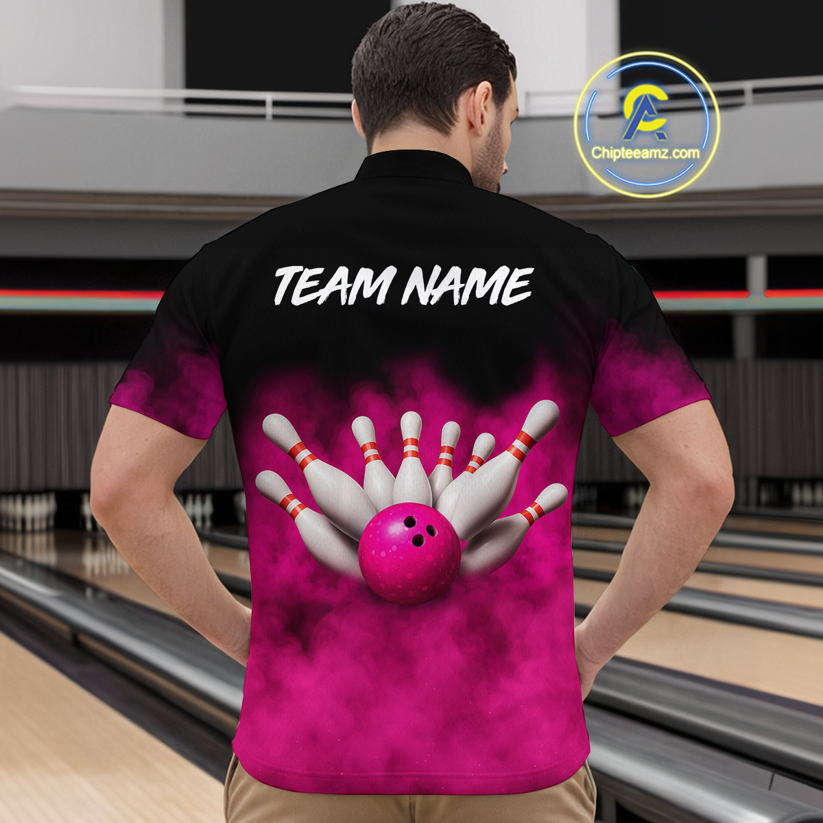 Pink Smoke Bowling Shirts for Men Women Team Personalized Bowling Polo and Quarter Zip MBL130