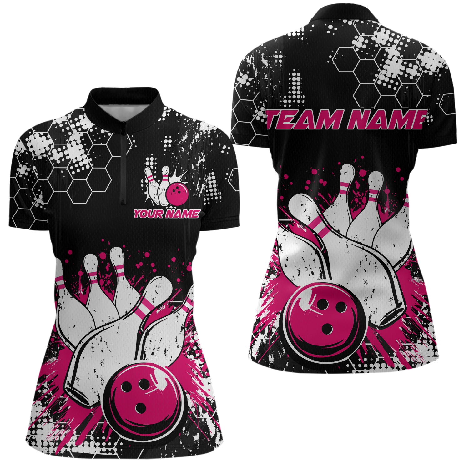 Pink Watercolor Bowling Shirts Men Women Team Custom Bowling Polo & 1/4 Zip Shirt MBL60