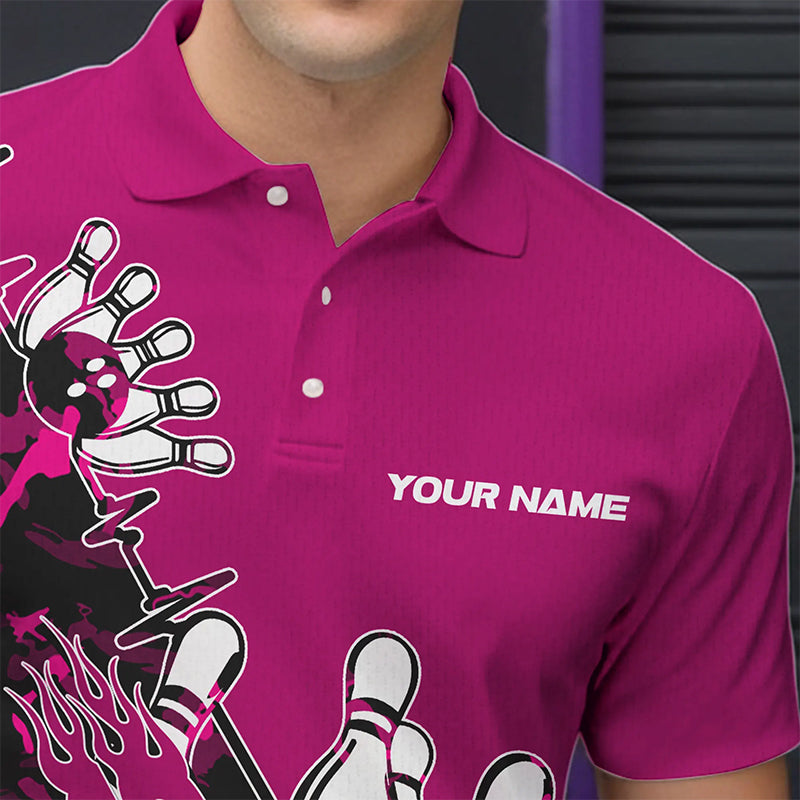 Custom Pink Camo Strike Bowling Polo Shirts For Men, Strike Team Bowling League Shirt Shirt IPHW8444