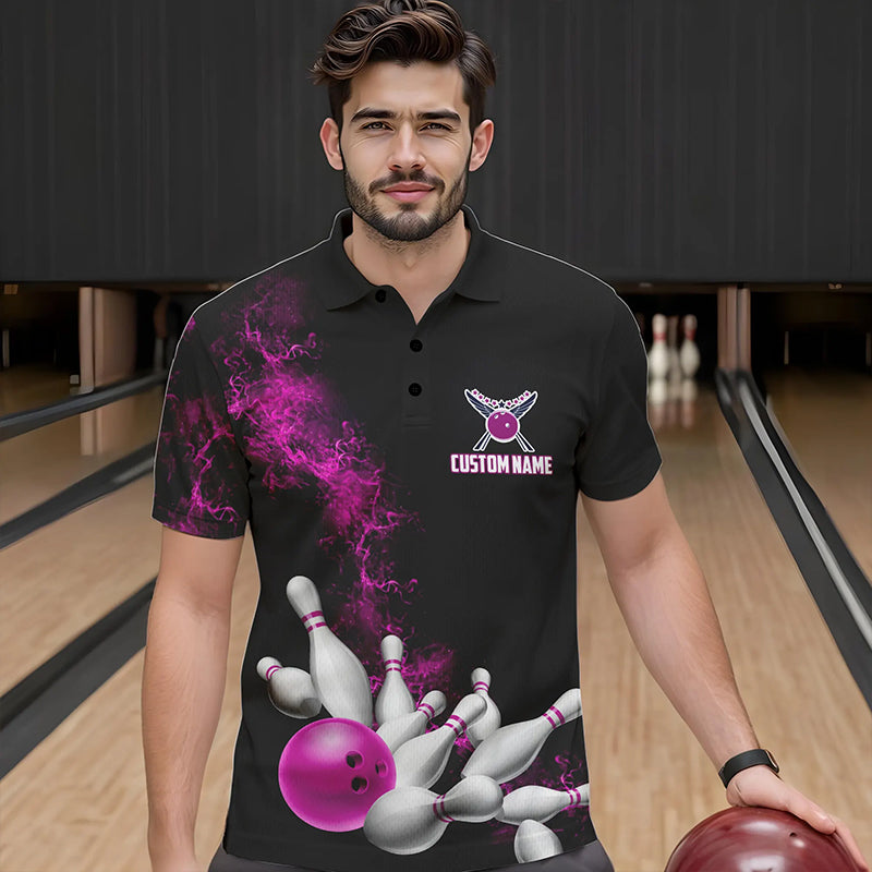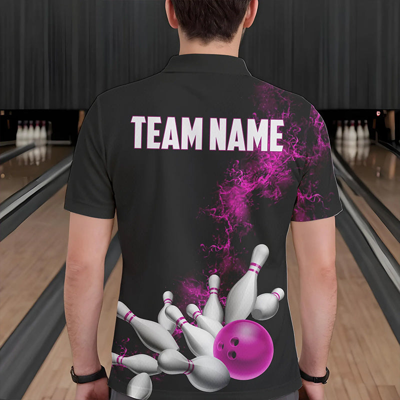 Custom Pink Strike Bowling Polo Shirts For Men Bowling Team Jerseys Bowling League Shirts IPHW8880