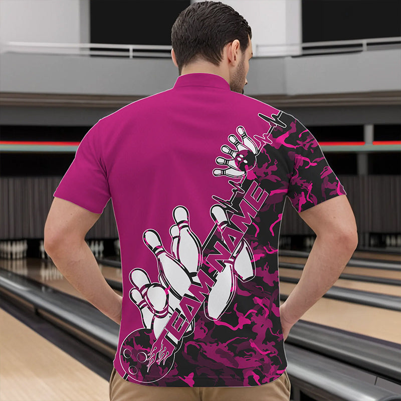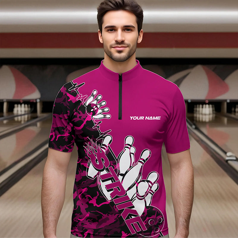 Custom Pink Camo Strike Bowling Quarter-Zip Shirts For Men, Strike Team Bowling League Shirt Shirt IPHW8444
