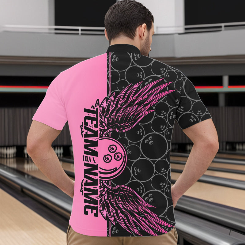 Black And Pink Custom Bowling Tournament Men Quarter-Zip Shirts, Bowling Ball And Wings Jerseys IPHW8848