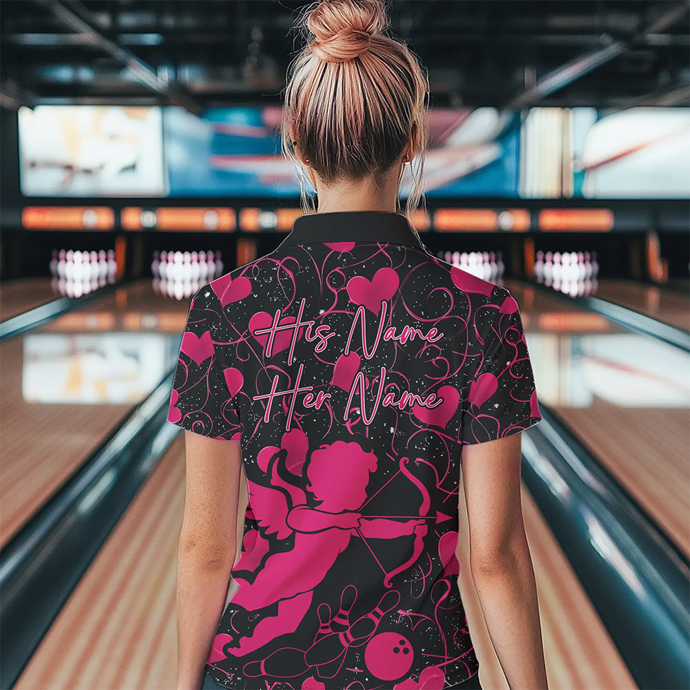 Black And Pink Custom Valentines Day Womens Bowling Quarter-Zip Shirt, Bowling Couple Shirt IPHW8330