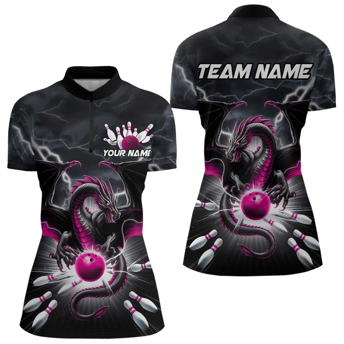 Custom Thunder Lightning Pink Dragon Bowling Women Quarter-Zip Shirts, Bowling Jerseys IPHW9113