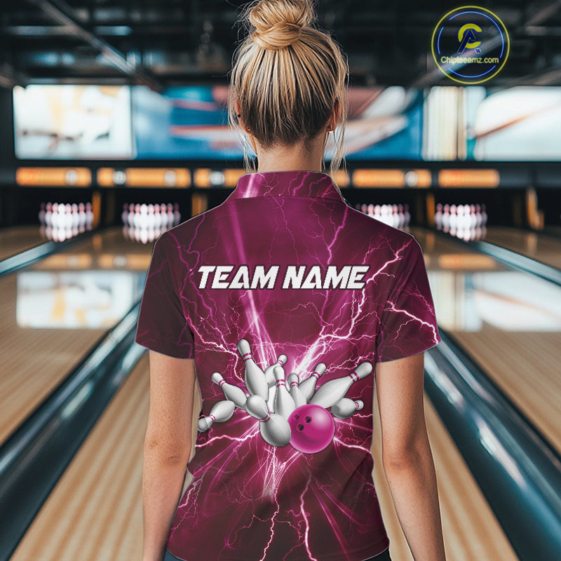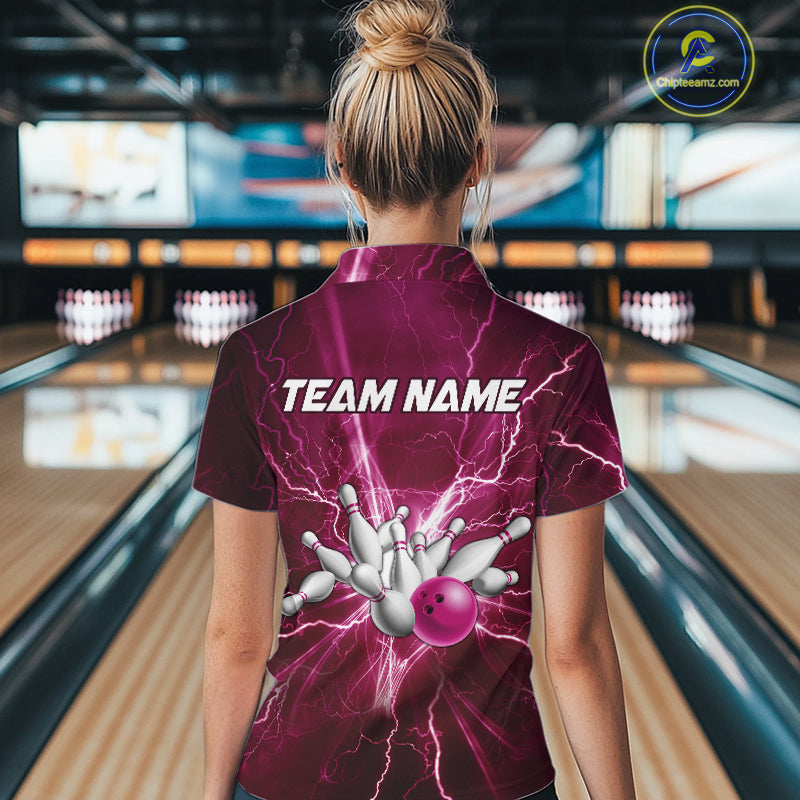 Women's Bowling Shirts Custom Pink Lightning Thunder Bowling Team Jersey, gift for team Bowlers NQS10603