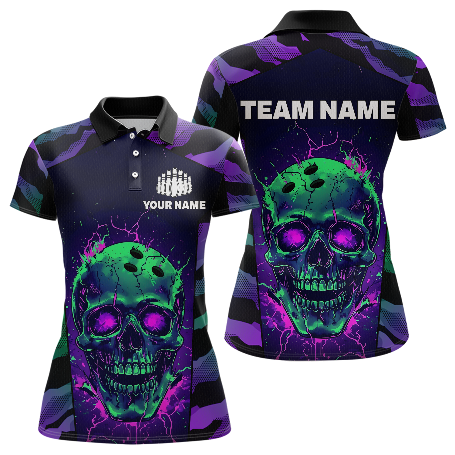 Black & Purple Skull Bowling Jersey Custom Polo Bowling Team Shirt for Men Women QZT675