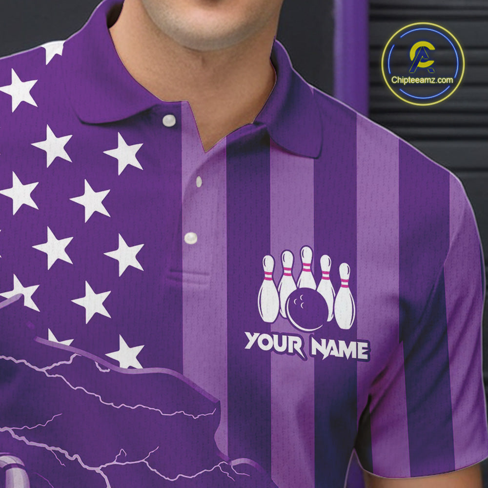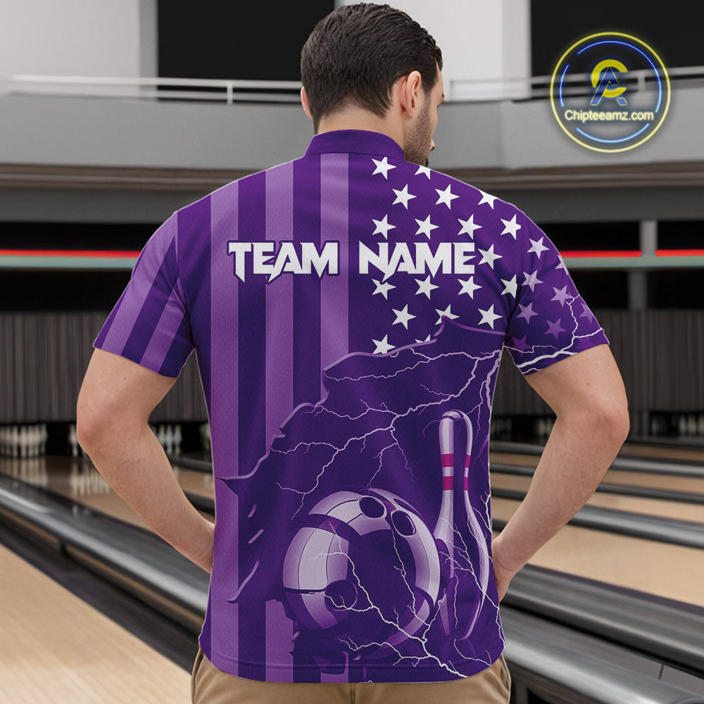 Personalized Purple American flag Lightning thunder Custom Bowling Team Shirts For Mens Bowling Jersey NQS9858