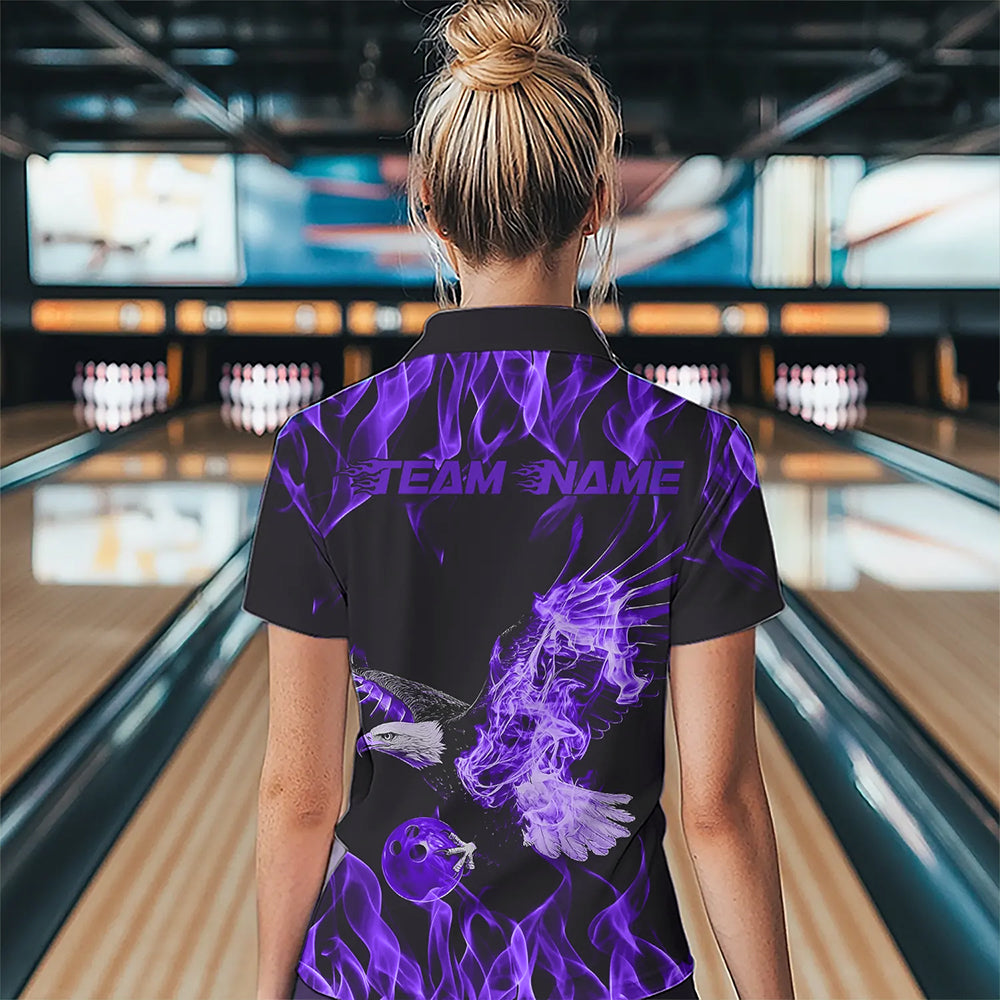 Custom Black And Purple Flame Eagle Bowling Women Quarter-Zip Shirts, Bowling League Shirt IPHW8790