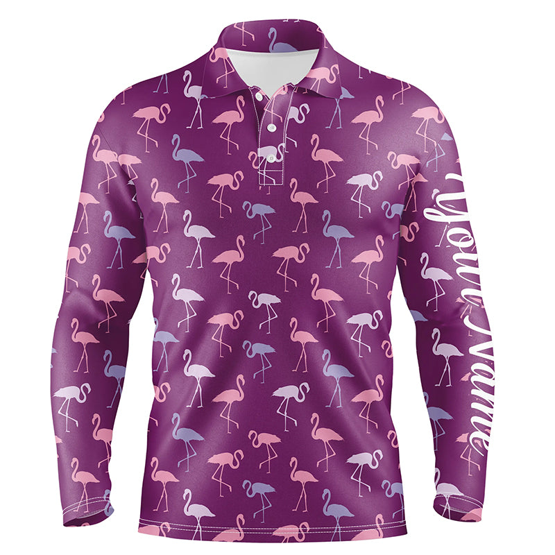Mens golf polo shirt purple flamingos birds pattern tropical custom name team golf polo shirts NQS4950