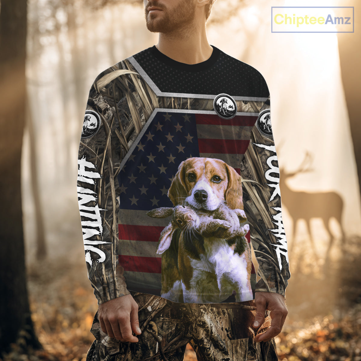 Custom Camouflage Rabbit Hunting Beagle Dog US Flag for Men, Rabbit Hunting Gifts NBT244