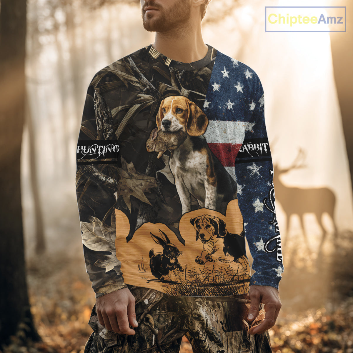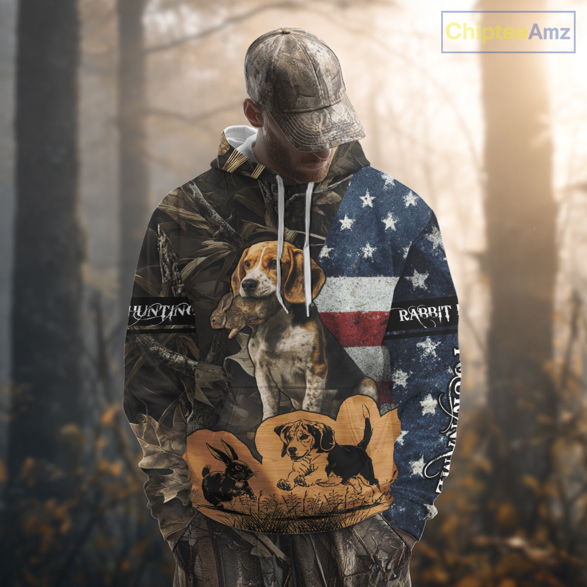 Custom Rabbit Hunting Camo US Flag 3D Shirts for Hunters, Rabbit Hunting Clothing NBT214