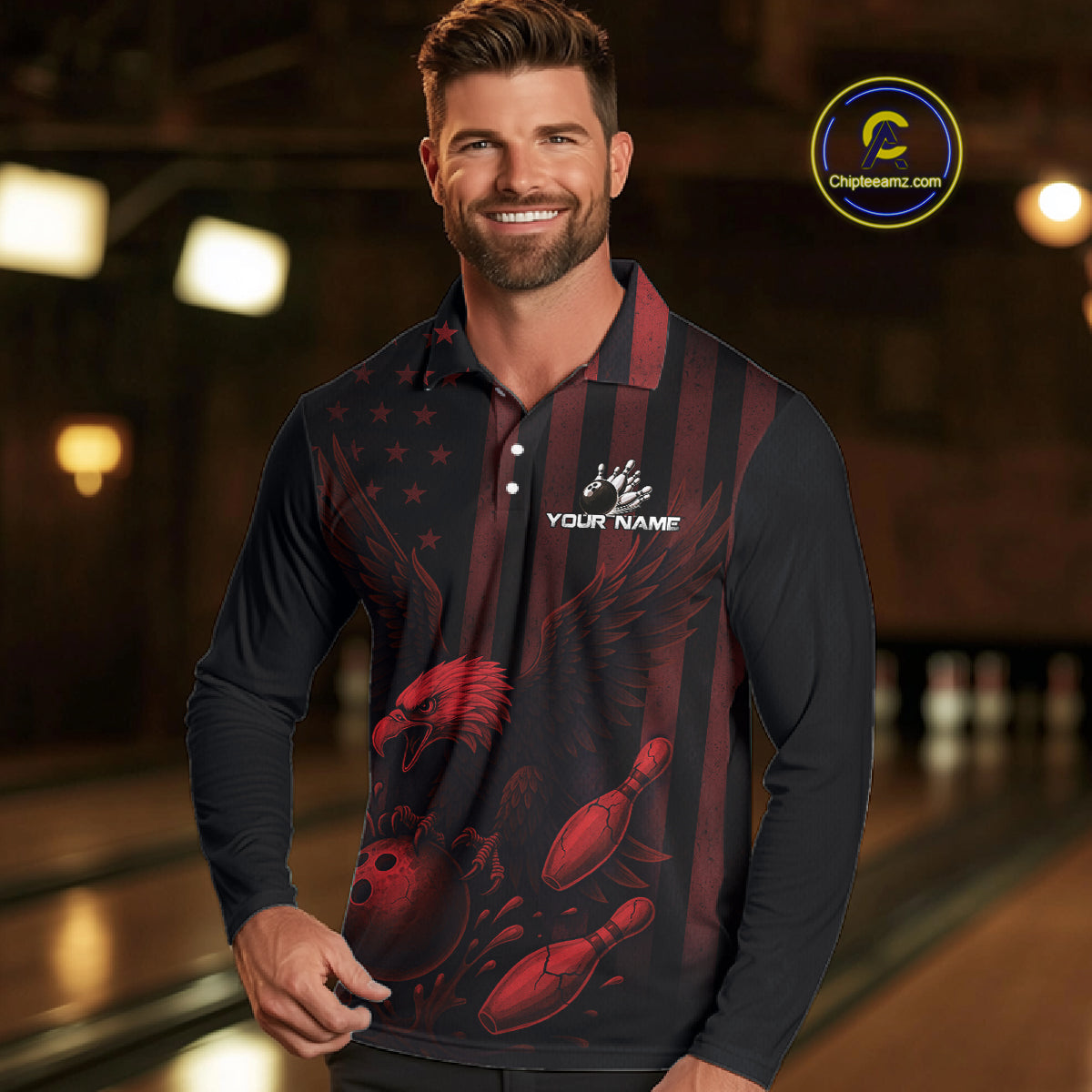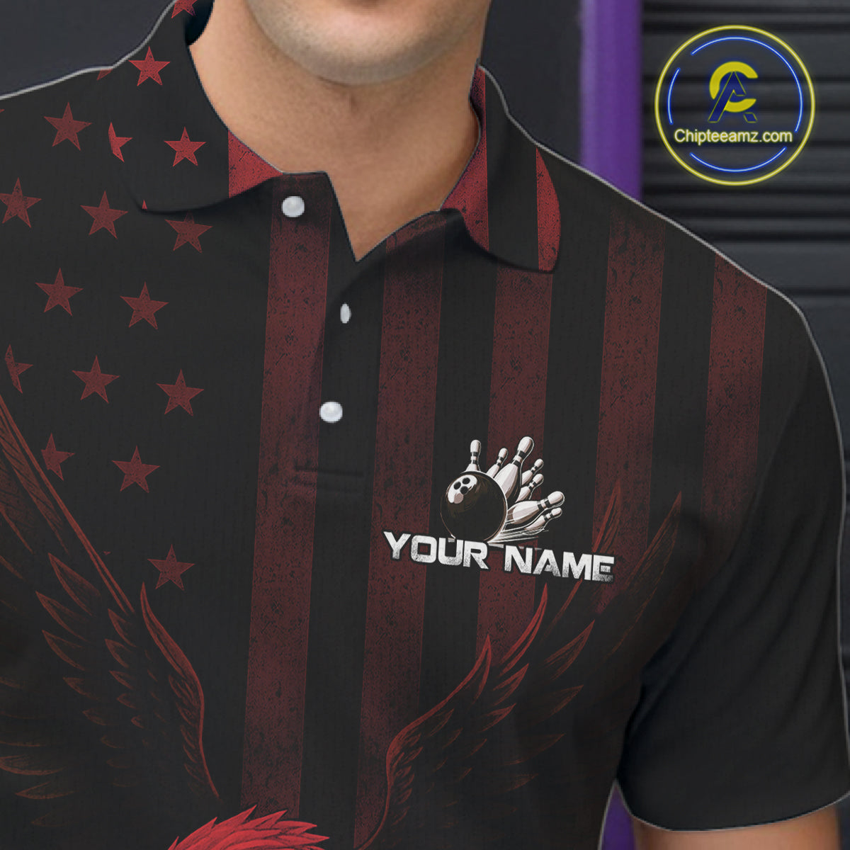 Black and Red American Flag Eagle Bowling Shirt For Mens Custom Patriotic Team bowling jerseys NQS10480