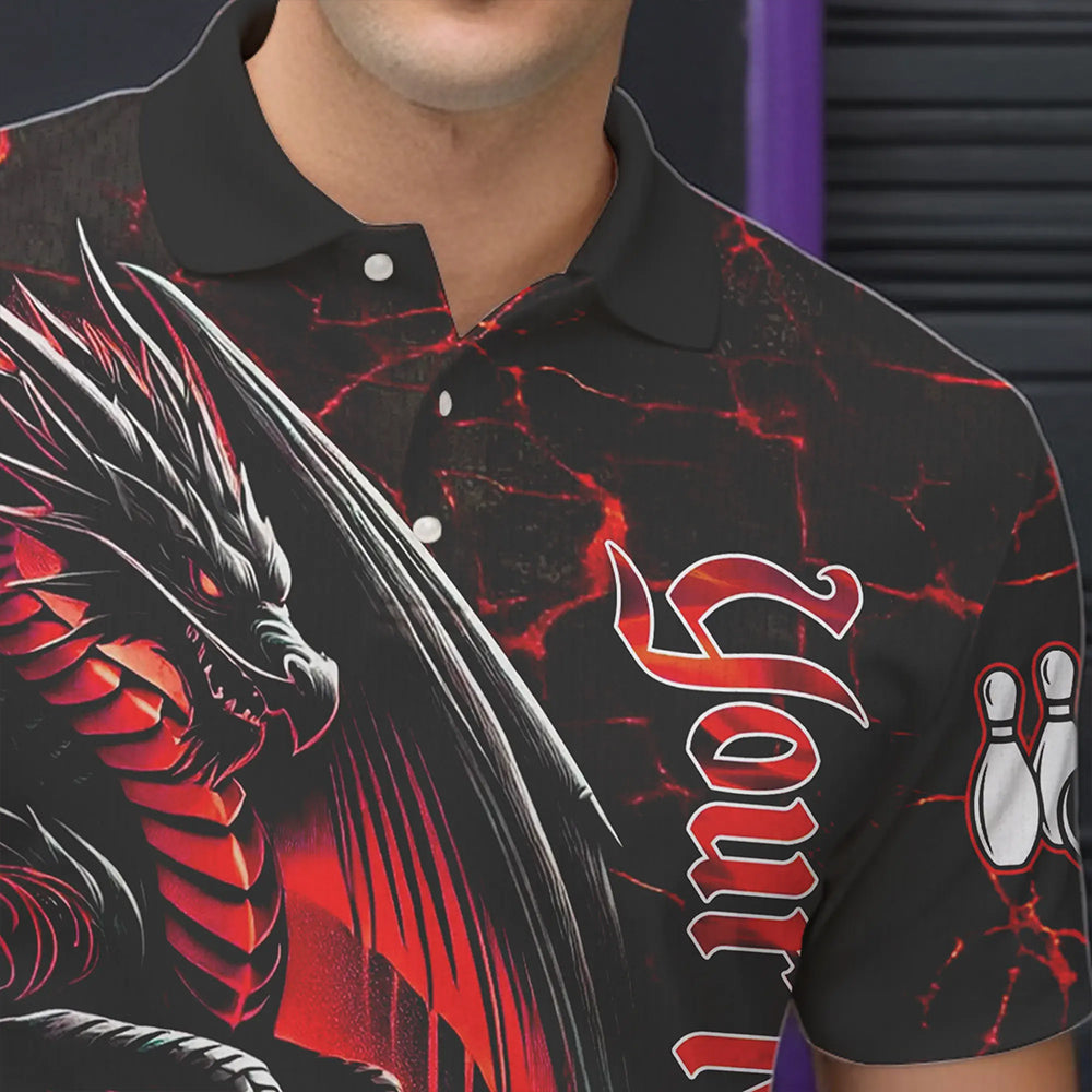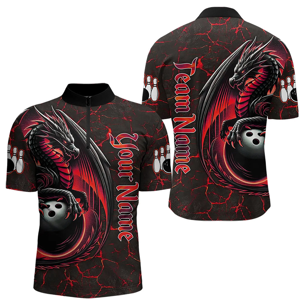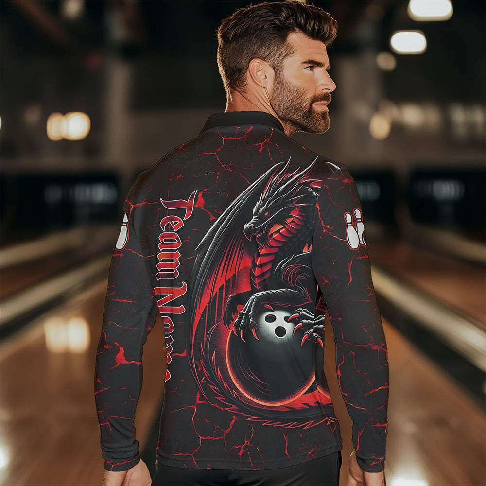 Black And Red Custom Dragon Bowling Shirts For Men, Dragon Bowling Team Shirts NQS9478