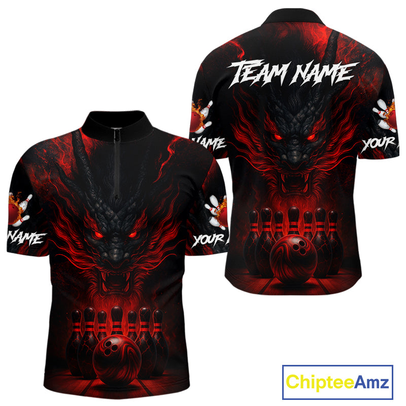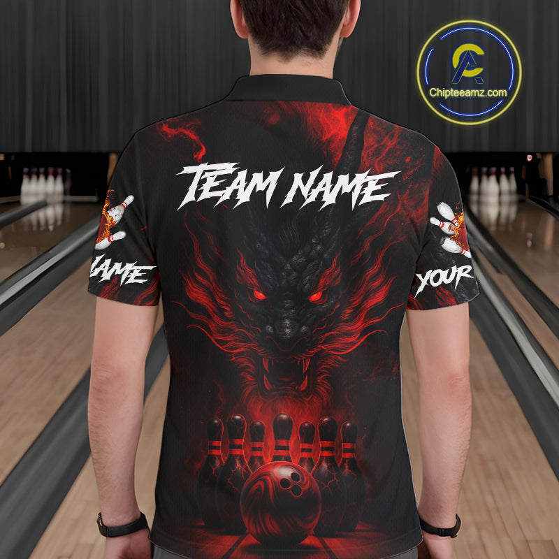 Black And Red Dragon Bowling Shirts For Men Custom Dragon Bowling League Shirts Outfits NQS10948