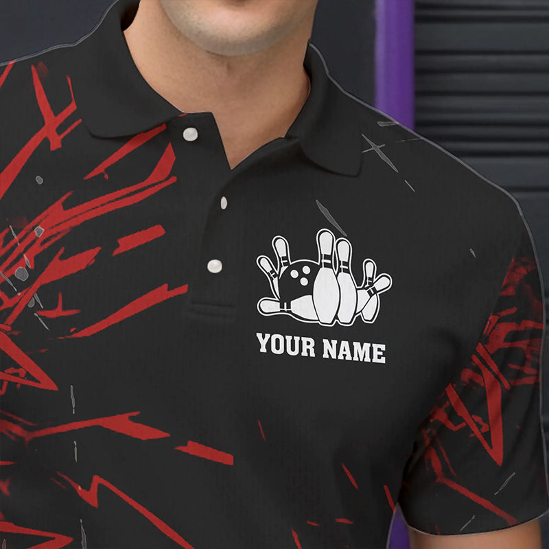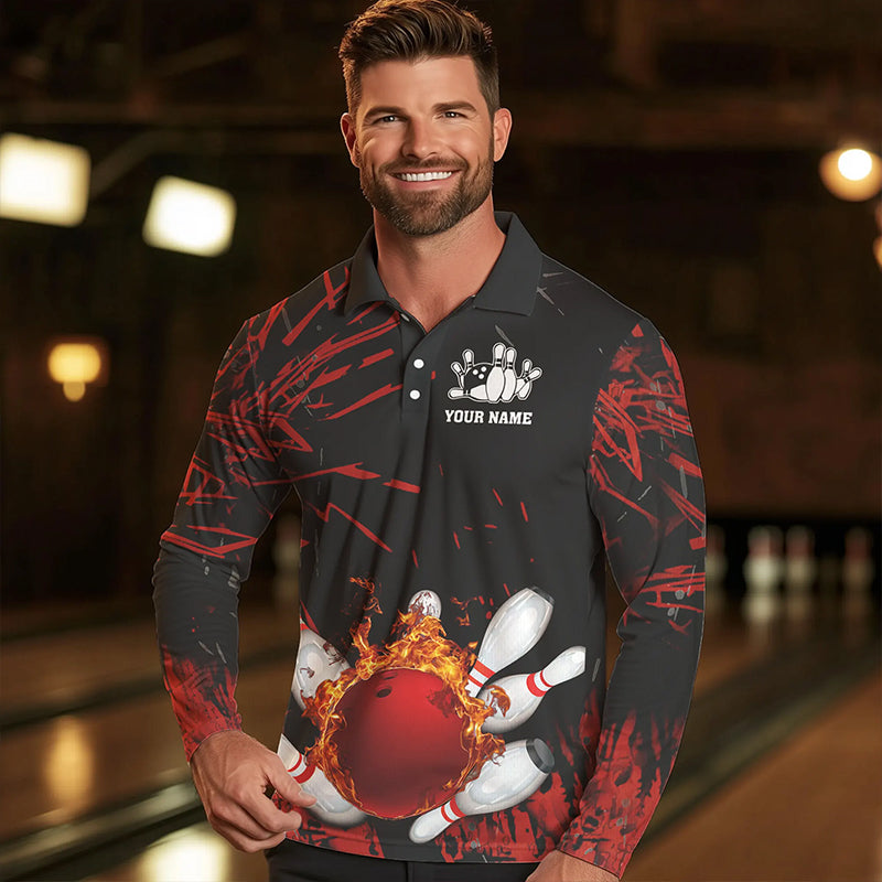 Black and Red Flame Bowling Polo, Quarter Zip Shirts for Men Custom Team mens bowling jersey NQS9313