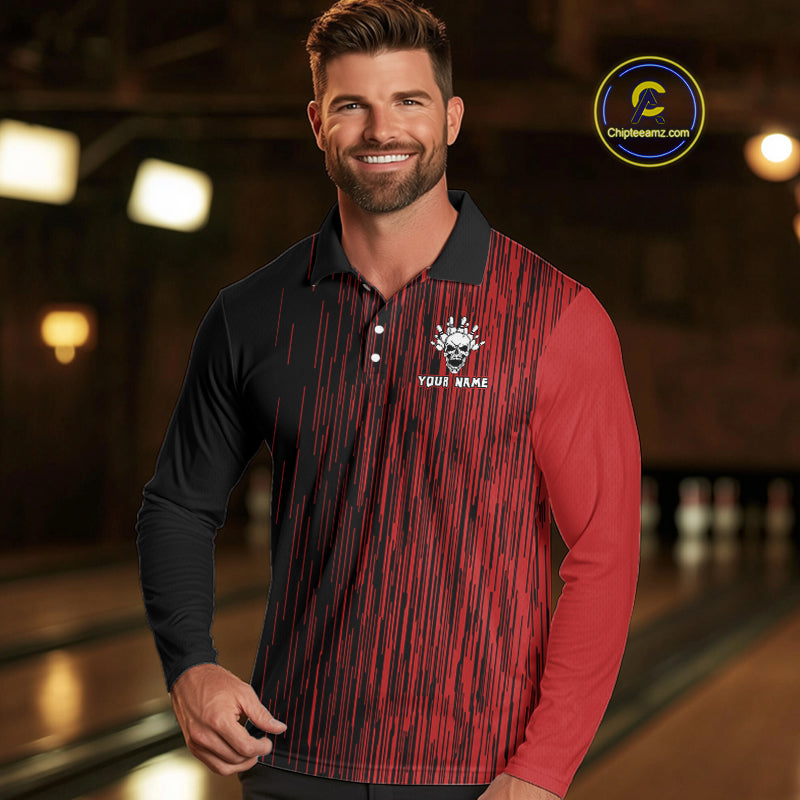 Black and Red pattern Flame Skull Bowling shirts for Men custom bowling jersey for team mens bowler NQS10254