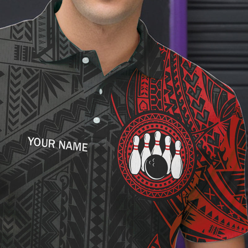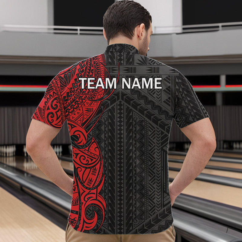 Black and Red Tribal pattern Mens Bowling Shirts Custom Bowling outfit men Team bowling league jersey NQS9738