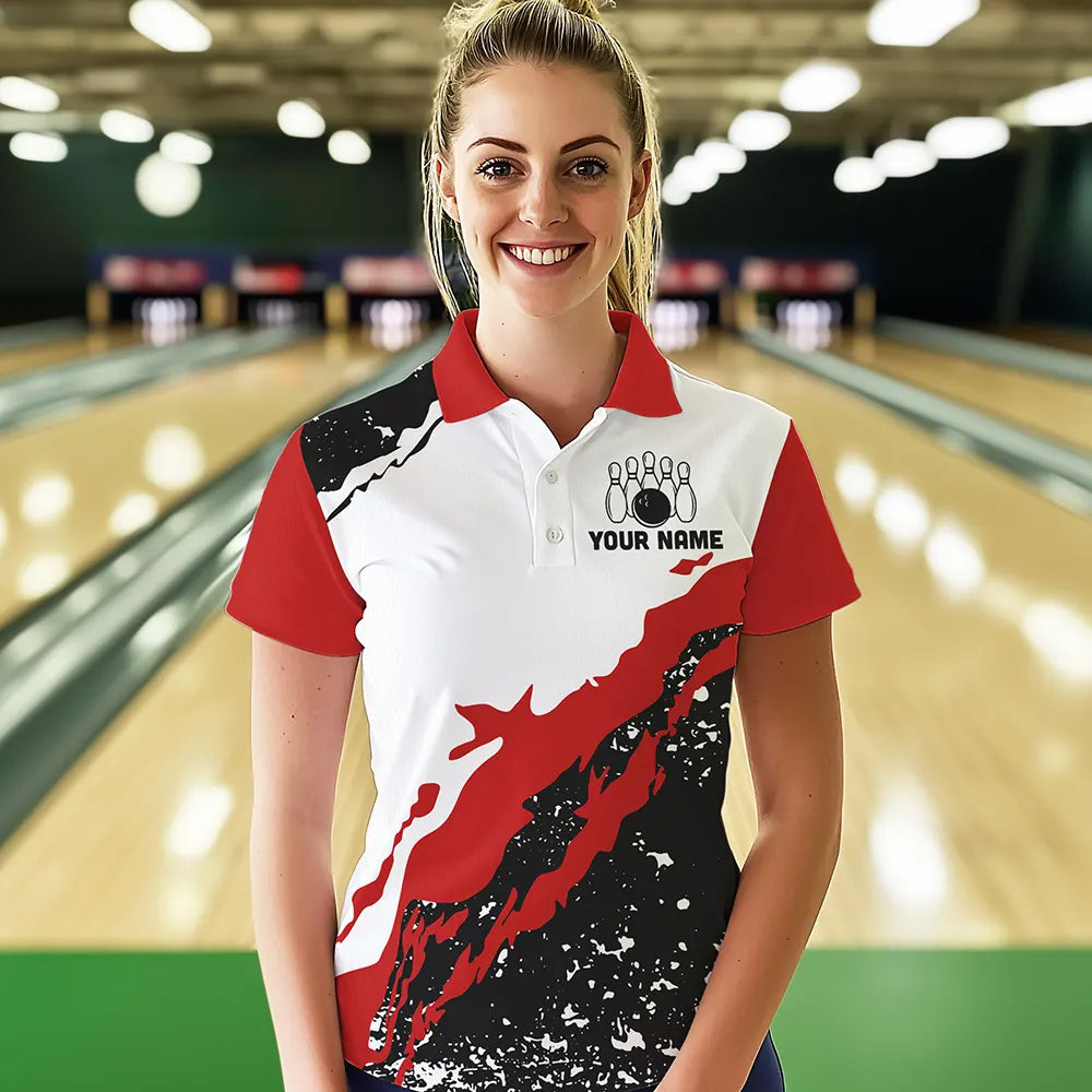 Black and white grunge pattern Bowling shirts for Women Custom Bowling Team league Jerseys | Red NQS9335
