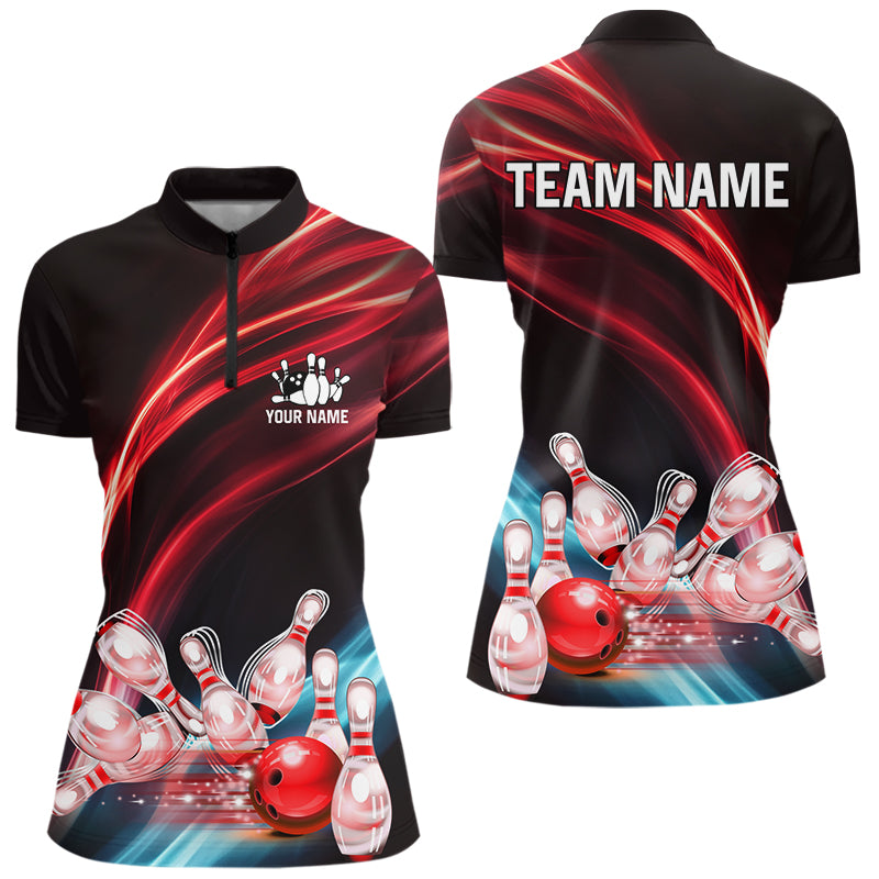 Custom Black and Red Women bowling Polo, Quarter Zip Shirts, team bowling outfits for women NQS9701