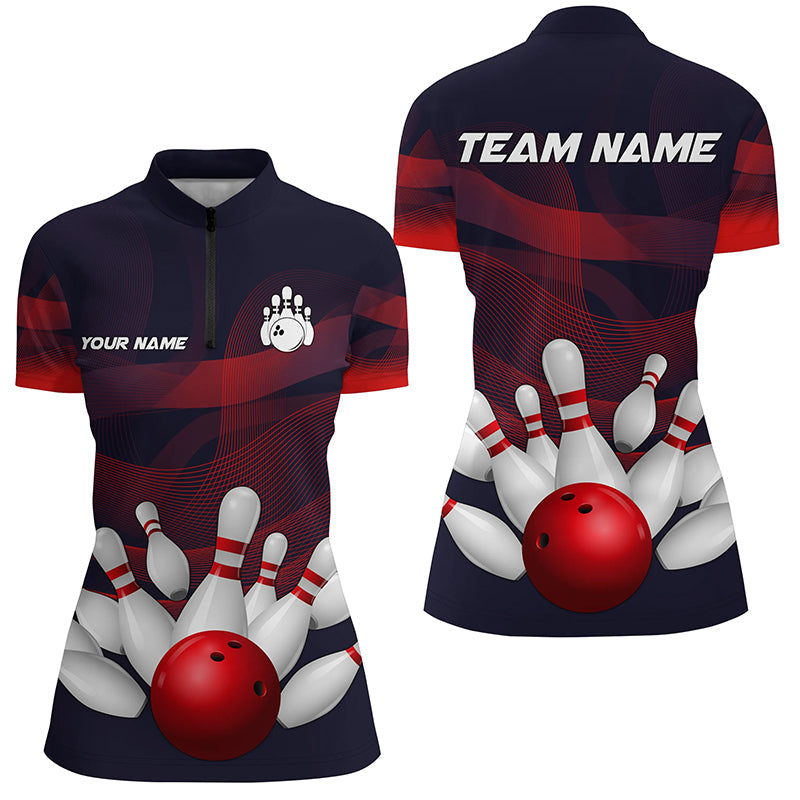 Custom Purple and Red Gradient Bowling Polo, 1/4 Zip Shirt For Women, Personalized Bowling Team Jersey NQS8897