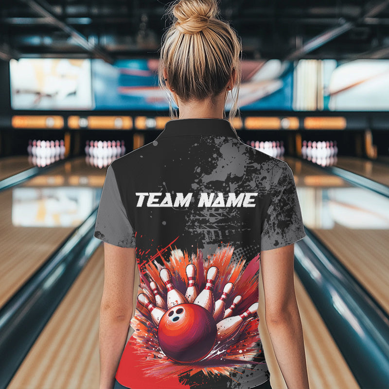 Custom Red Bowling Shirts for Men Women Team Bowling Polo and Quarter Zip for Bowler MBL75