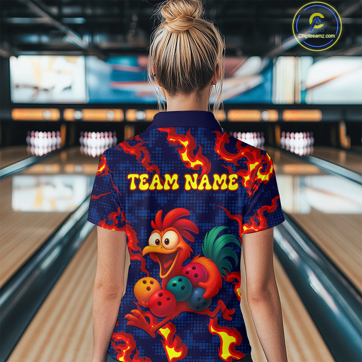 Custom Red Flame Funny Chicken for Women Bowling Team Jersey Bowling League Shirt Polo & 1/4-Zip QZT762