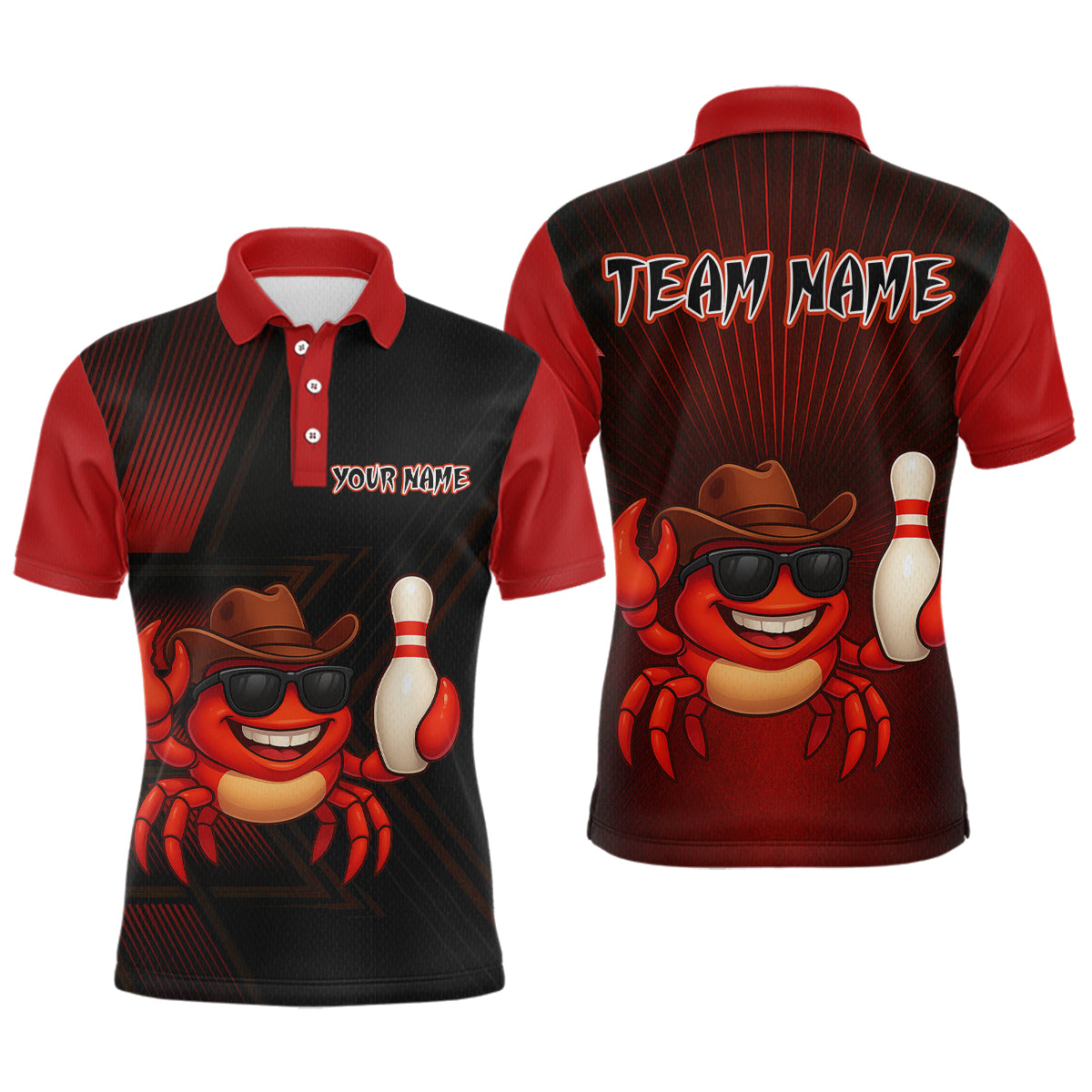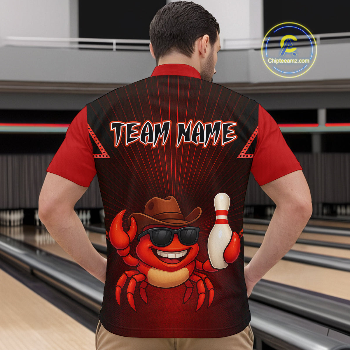 Custom Red Funny Crab Bowling Team Shirt Men Bowling Jersey Outfit Polo & 1/4-Zip Bowler Gift QZT757