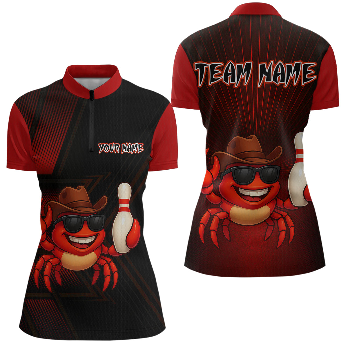 Custom Red Funny Crab Bowling Team Shirt Women Bowling Jersey Outfit Polo & 1/4-Zip Bowler Gift QZT757