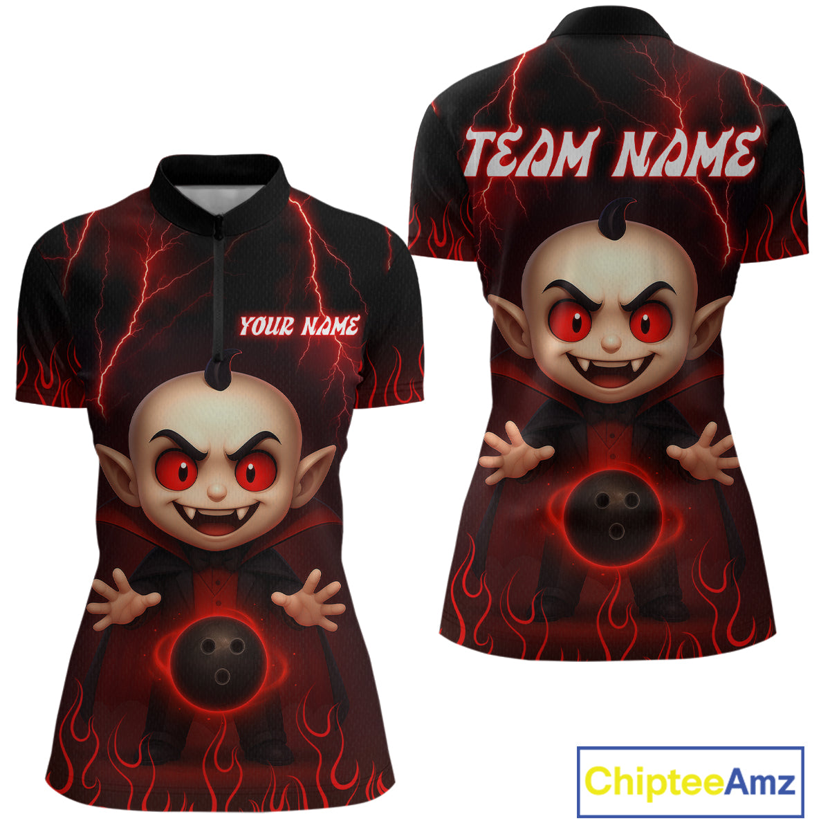 Custom Red Funny Vampire Thunder Bowling Shirt Polo & 1/4-Zip Bowling League Jersey for Women Outfit QZT753