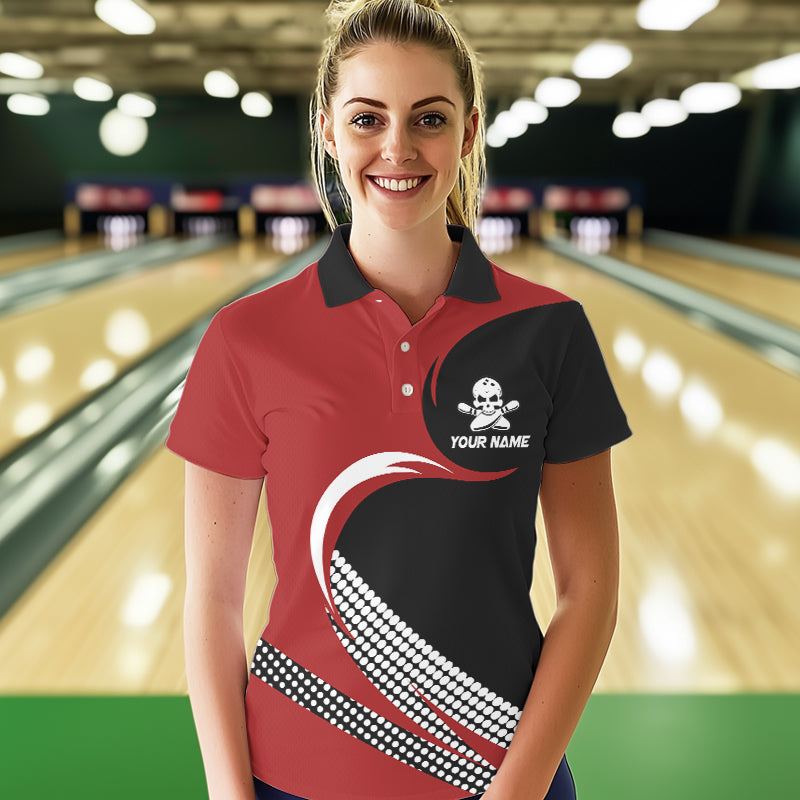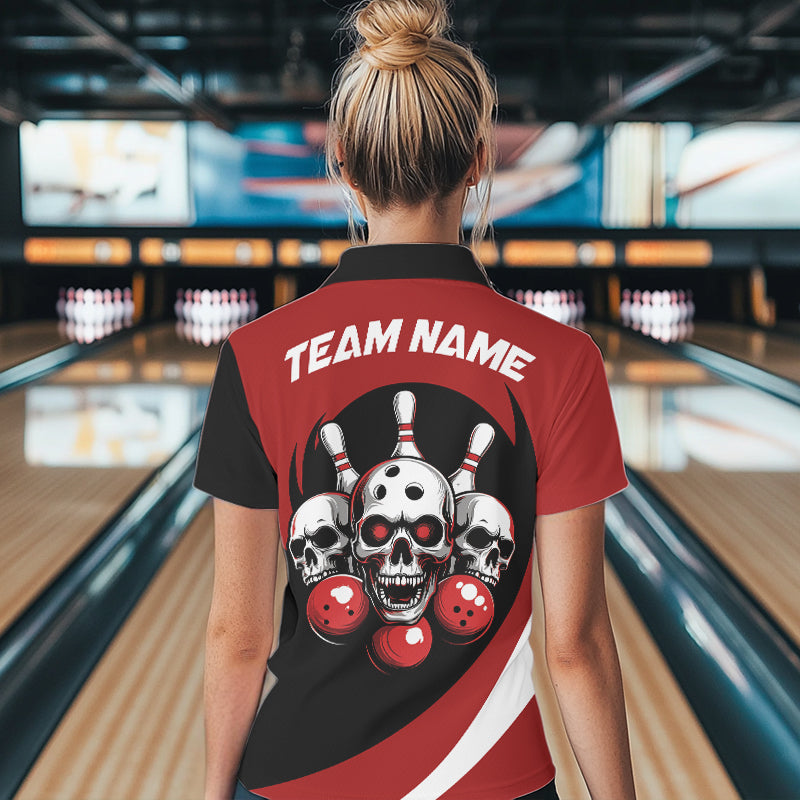 Custom Red Skull Bowling Shirt Polo Bowling Jersey for Men Women Bowling Outfit QZT671