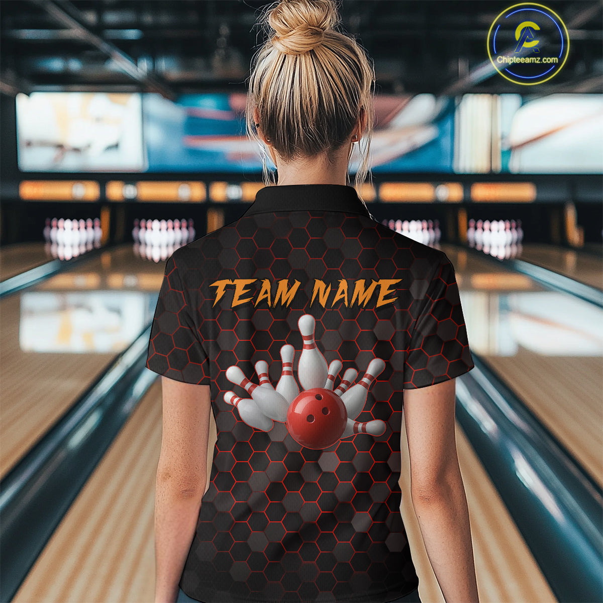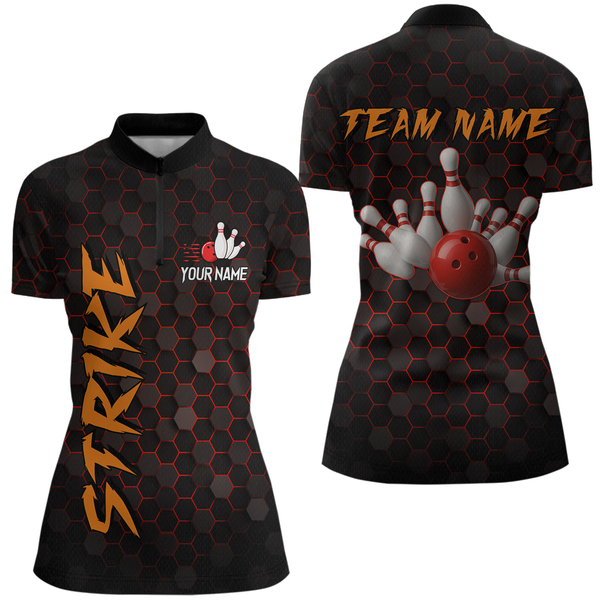 Custom Strike Red Bowling Women Bowling Shirt Polo & Quarter-Zip Bowling Team Jerseys HNT79