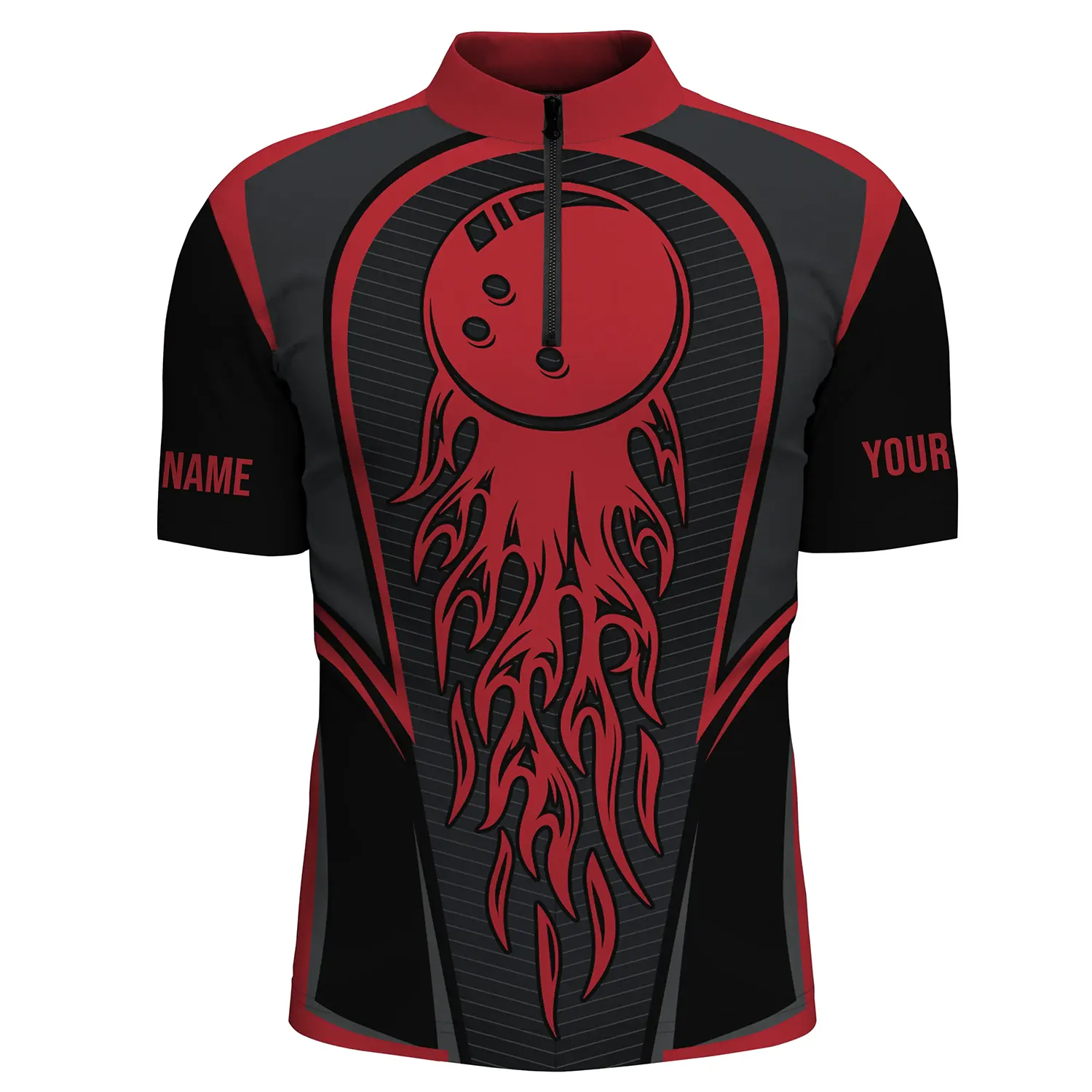 Red Flaming Bowling Ball Custom Men'S Bowling Jerseys, Matching Team Bowling Shirts IPHW4200