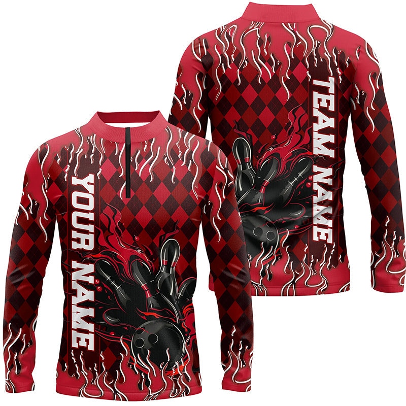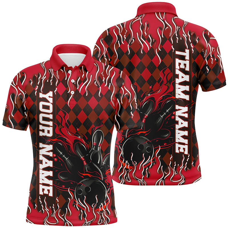 Red Argyle Pattern Custom Flame Strike Bowling Shirts For Men, Bowling Team Shirt Bowler Outfit IPHW7897
