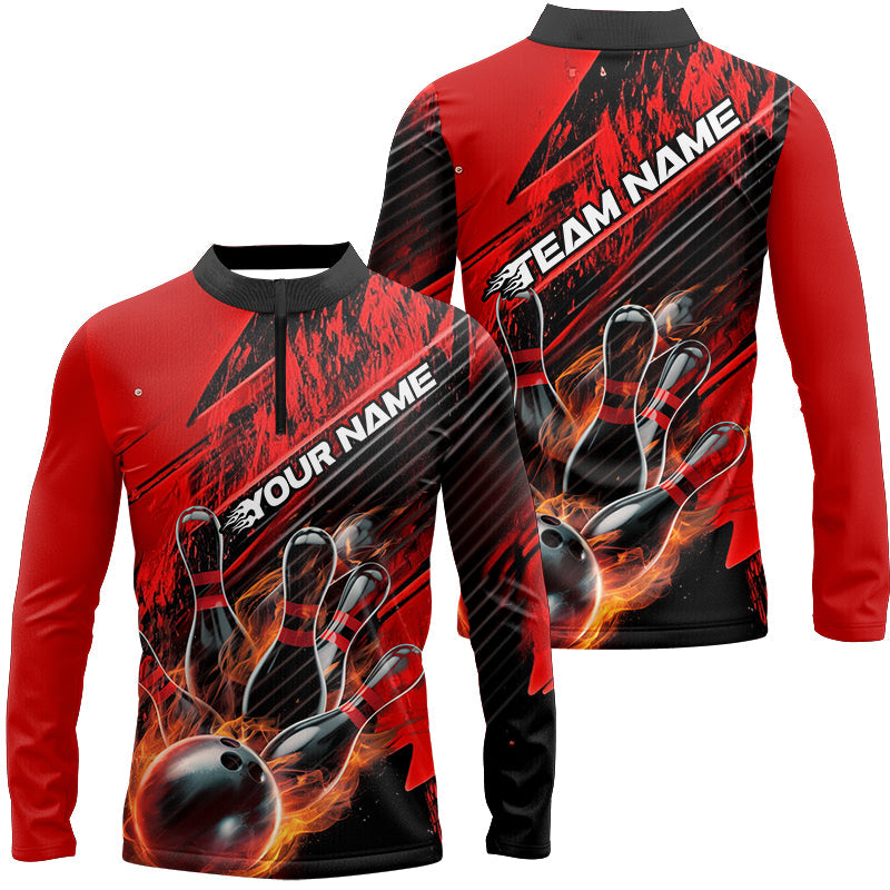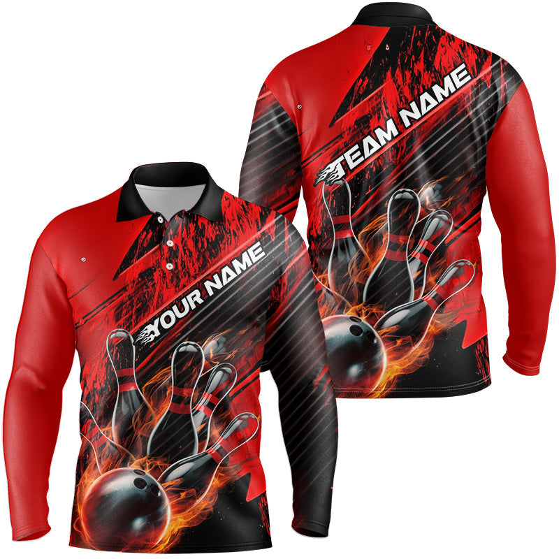 Black And Red Custom Flame Bowling Shirts For Men, Unisex Fire Bowling Team Shirt Bowler Outfit IPHW7939