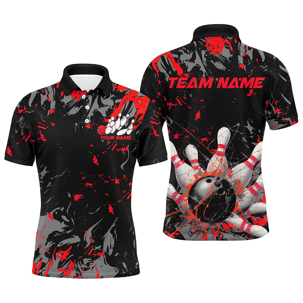 Black And Red Splatter Bowling Shirts For Men, Bowling Team Uniform Bowler Outfit IPHW7985