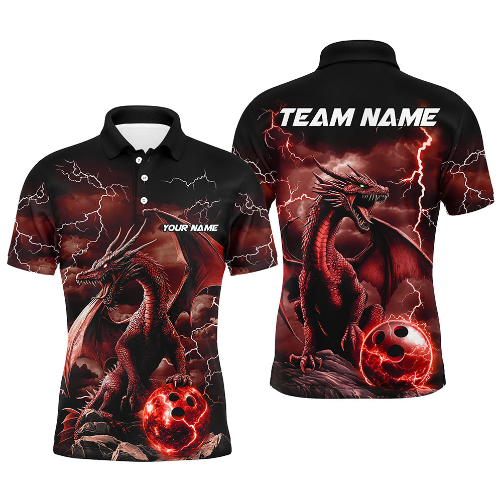 Black And Red Thunder Lightning Custom Dragon Bowling Team Shirts For Men, Bowling Uniform IPHW7993