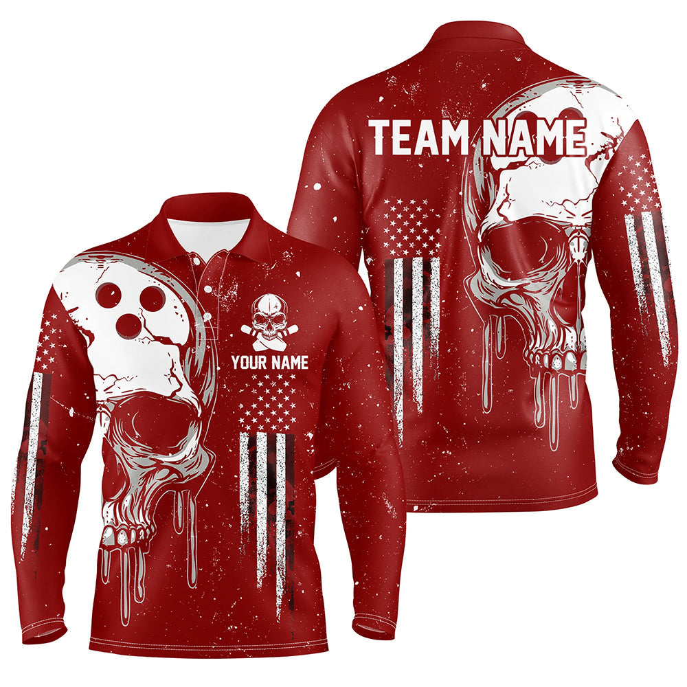 Personalized Red and White grunge American Flag Skull Bowling Team Shirts, Patriotic Bowling Jerseys NQS9227