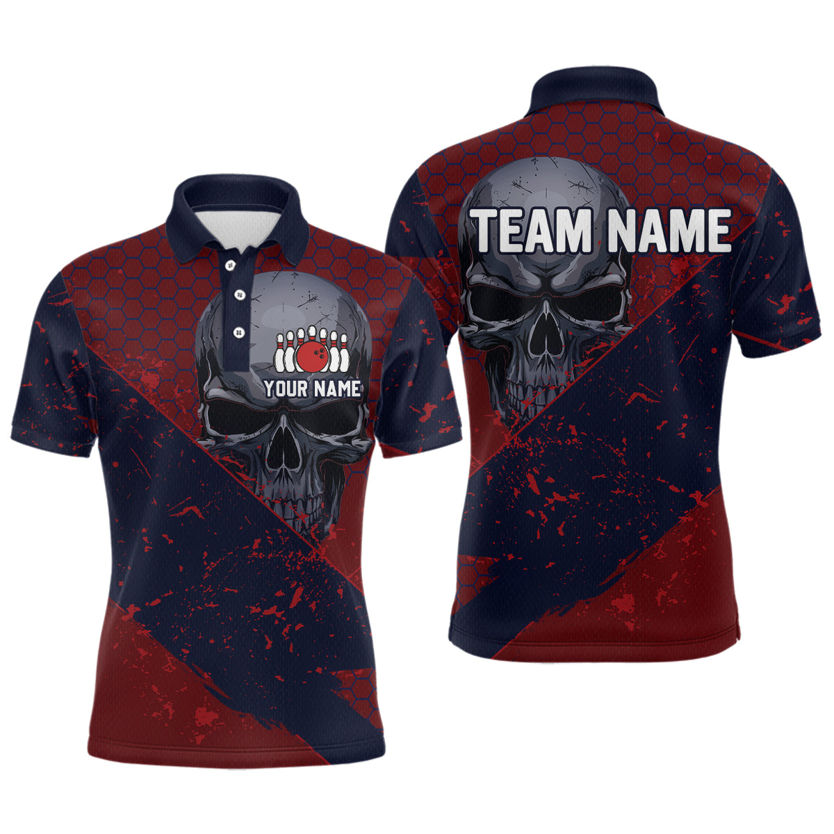 Custom Red & Navy Bowling Polo Shirt for Men and Women Skull Bowling Team League QZT604