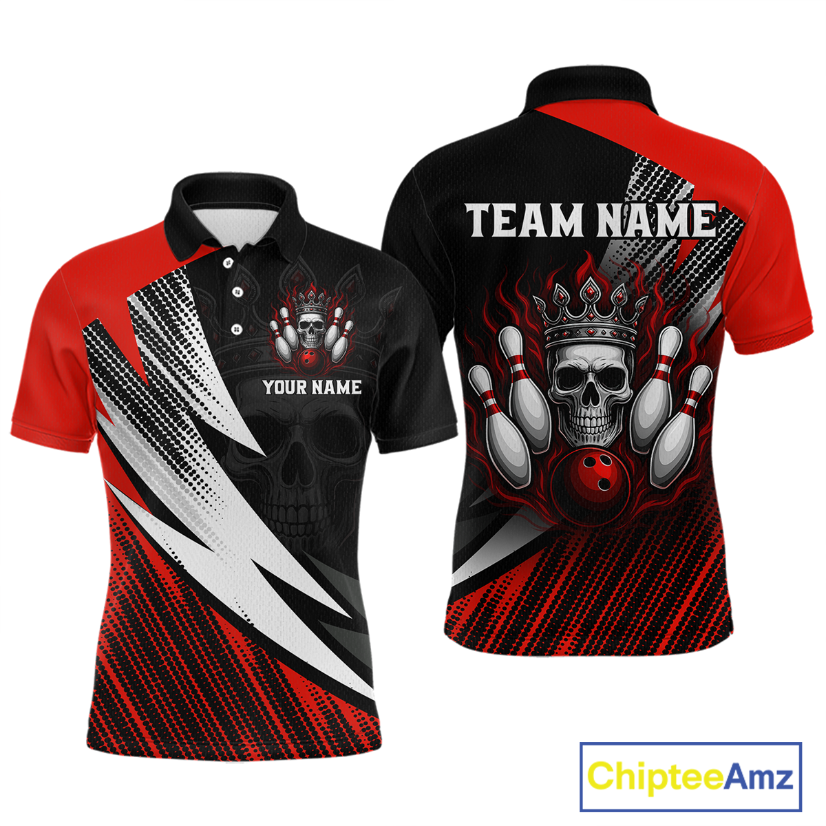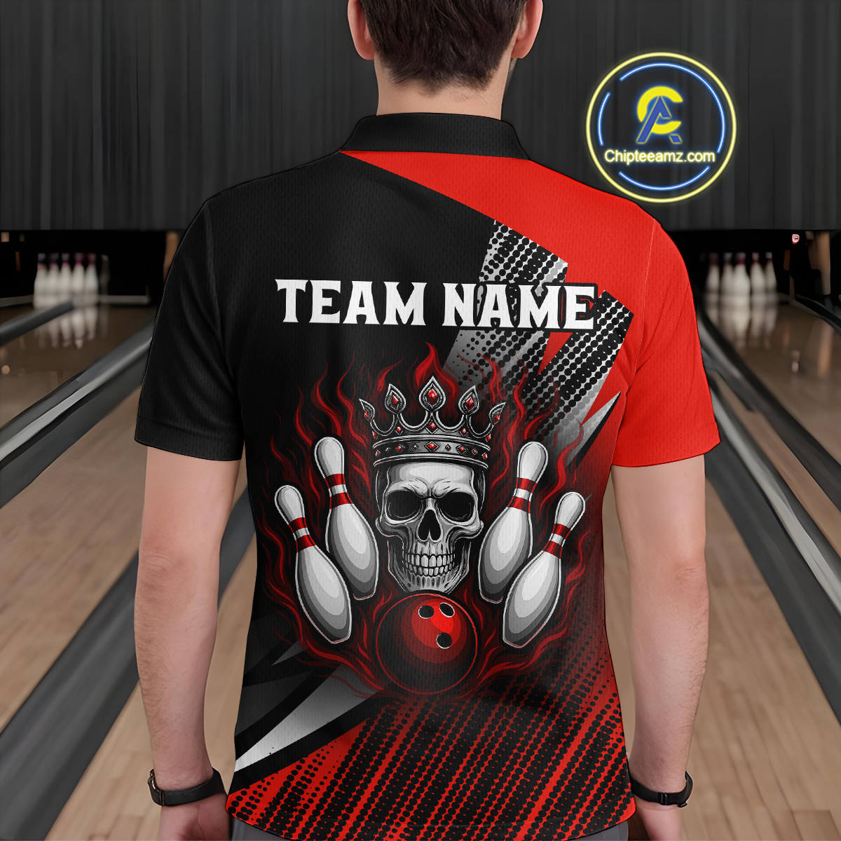Red Skull Crown Bowling Custom Men Bowling Shirt Polo & Quarter-Zip Bowling Team Jerseys HNT65