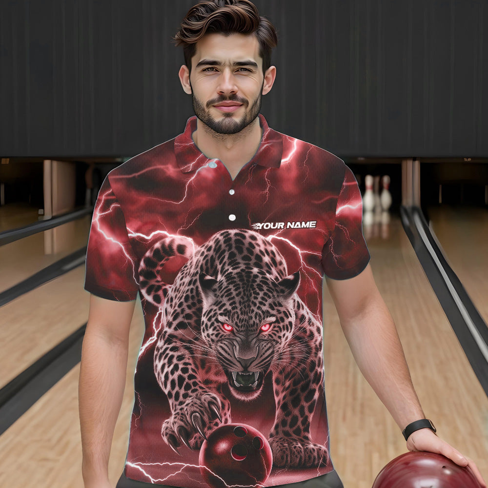Red Thunder Lightning Custom Leopard Bowling Polo Shirts For Men, Bowling League Shirt IPHW8321