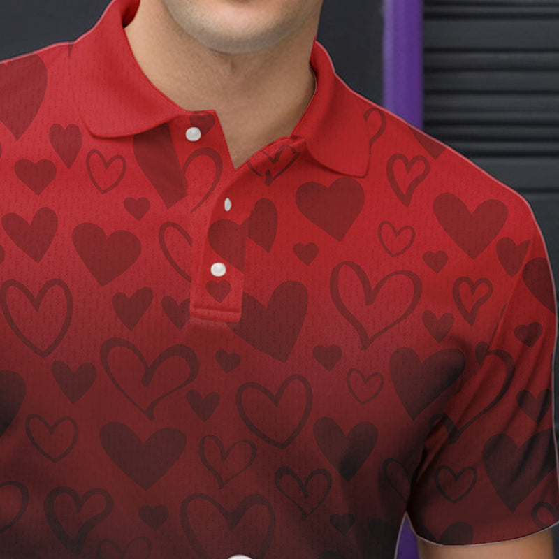 Red Heart Theme Custom Valentines Bowling Polo Shirt For Men, Couple Bowling Outfits IPHW8357