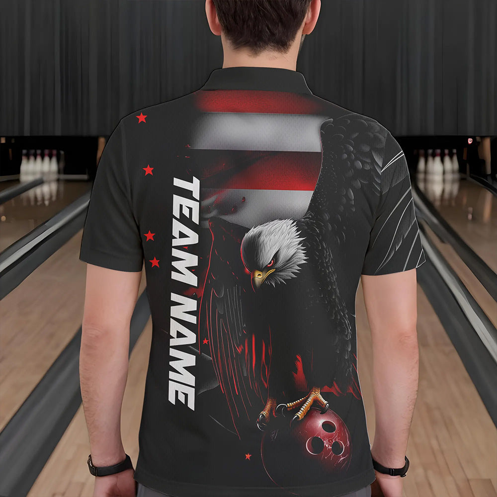 Custom Black And Red US Flag Eagle Bowling Polo Shirts For Men, Patriotic Bowling League Shirt IPHW8453