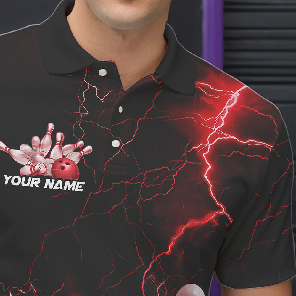 Custom Black And Red Thunder Lightning Bowling Tournament Polo Shirts For Men IPHW8521