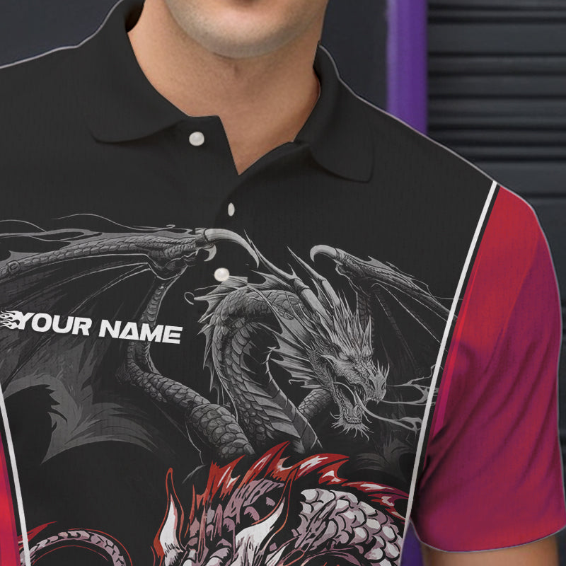 Custom Black And Red Dragon Bowling Polo Shirts For Men, Dragon Bowling Tournament Uniform IPHW8553