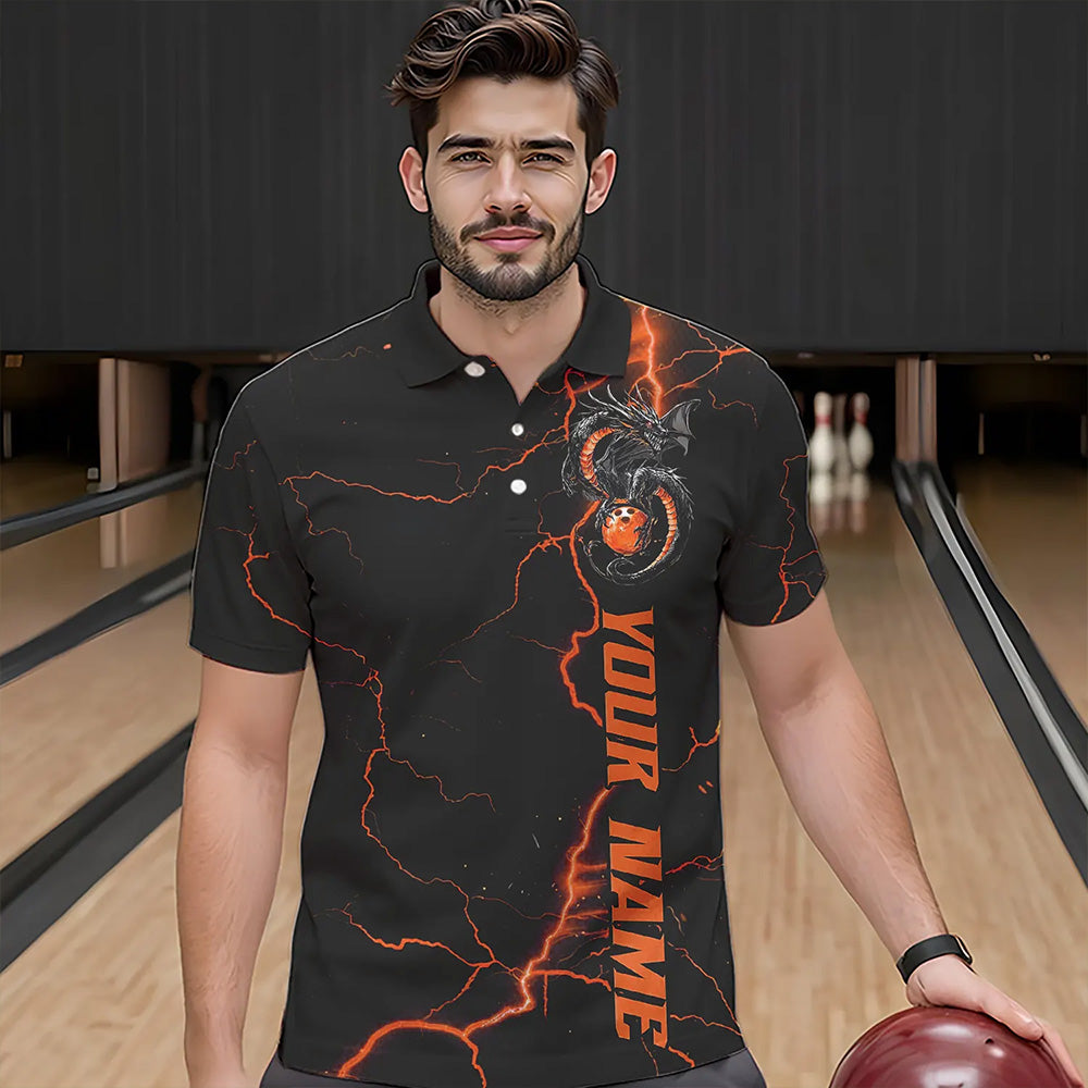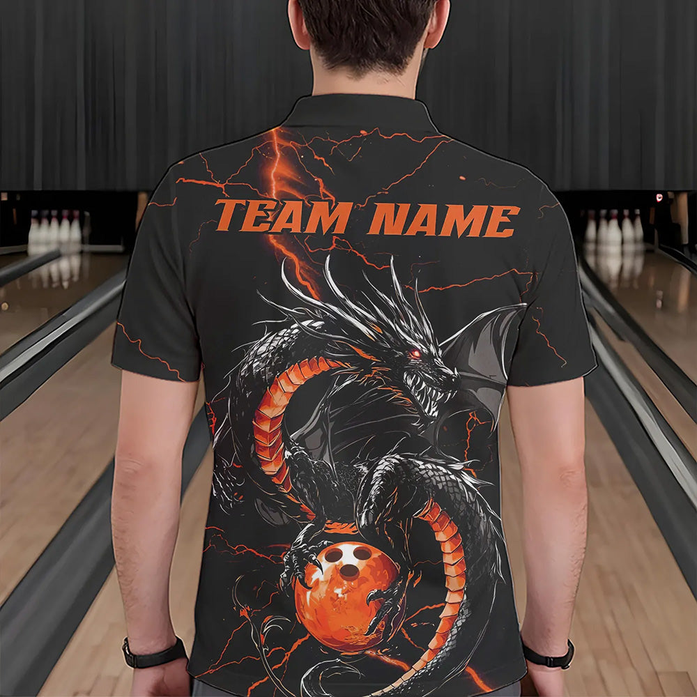 Black And Red Custom Dragon Bowling Polo Shirts For Men, Dragon Bowling League Shirts Outfits IPHW8686