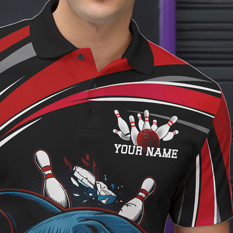 Black And Red Custom Shark Bowling Team Polo Shirts For Men, Shark Bowling League Shirt IPHW8726