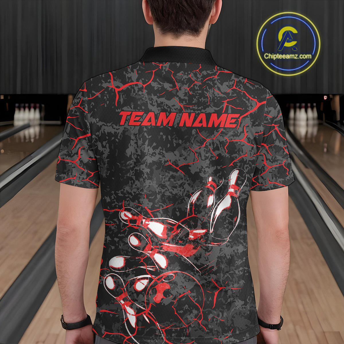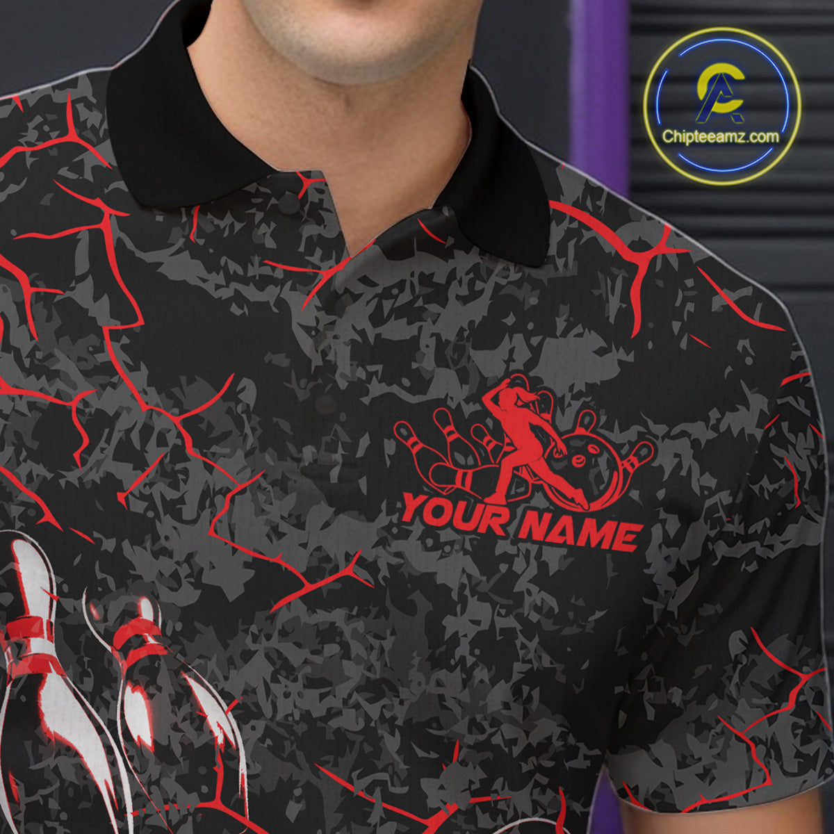 Custom Black And Red Camo Bowling Team Polo Shirts For Men, Bowling League Shirt IPHW9370