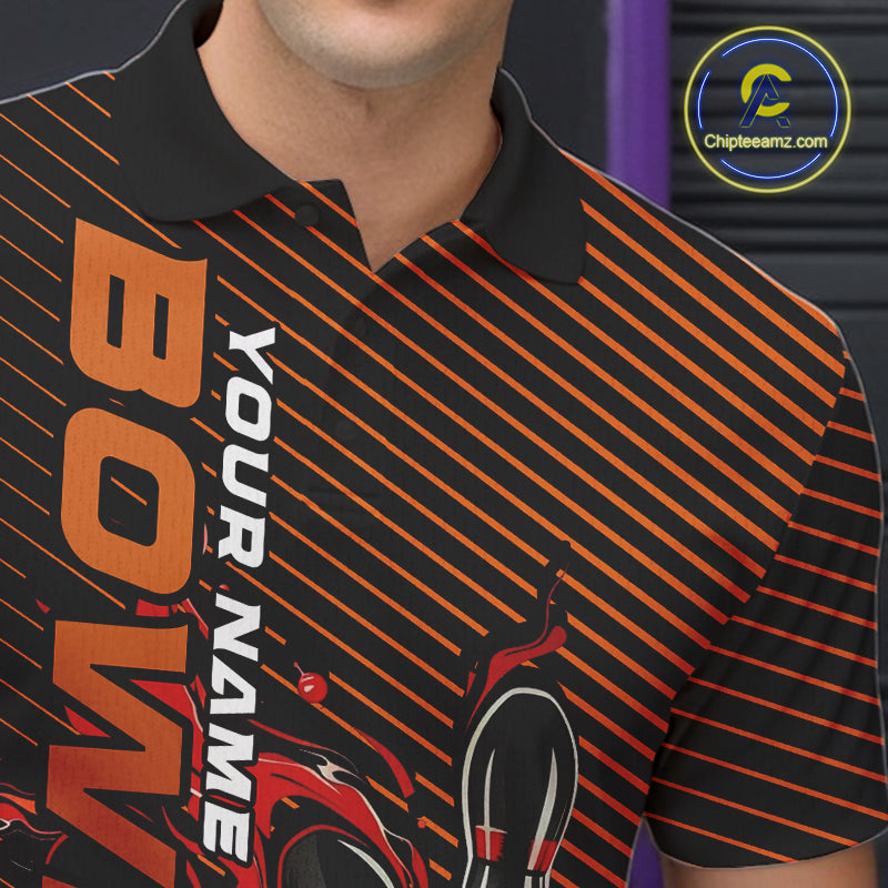 Custom Red Orange Flame Bowling Polo Shirts For Men, Bowling Tournament Team Shirt IPHW9403