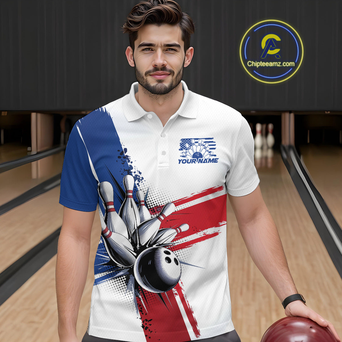 Personalized Red, White And Blue Patriotic US Flag Bowling Polo Shirts For Men Team IPHW9543