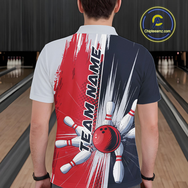 Custom Red, White And Blue Bowling Team Polo Shirts For Men, Bowling Jerseys IPHW9546